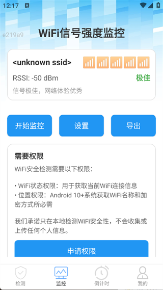 3. 点击页面下方的‘监控’,即可开始监控WIFI信号强度;
