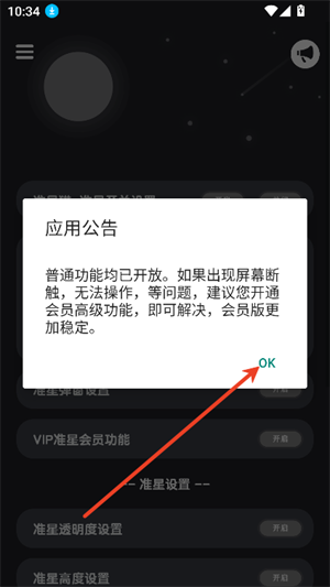 2、点击“ok”点击开启准星开关。