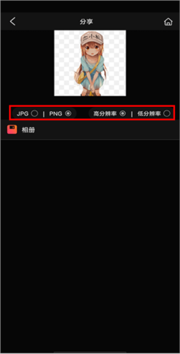 4、最后,点击右上角的“保存”选项,接着选择文件后缀以及分辨率,这样就能将其保存到手机里。