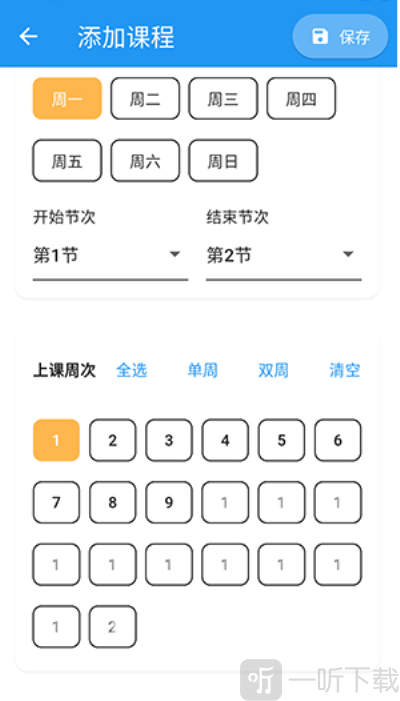 2. 输入上课时间、教师、地点、标签以及上课节次等信息。