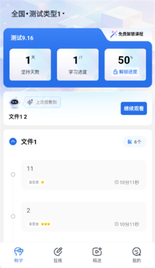 1. 开启软件并进入首页,在这里能够观看各式各样的文件,同时还能知晓具体的学习状况。