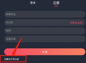 2、点击【注册】,可通过手机号或邮箱进行注册,推荐使用手机号。若想用邮箱注册,点击左下角【切换为邮箱注册】即可。