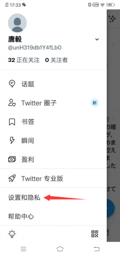 2. 在个人中心里寻找到“设置和隐私”选项,然后点击该选项。