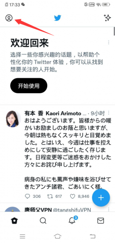 1、第一步,在Twitter主页点击头像图标,进入个人中心。