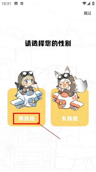 1、打开软件后,能够依据性别进行分类选择,比如要是你是男生,那就选择男孩纸这一类别。