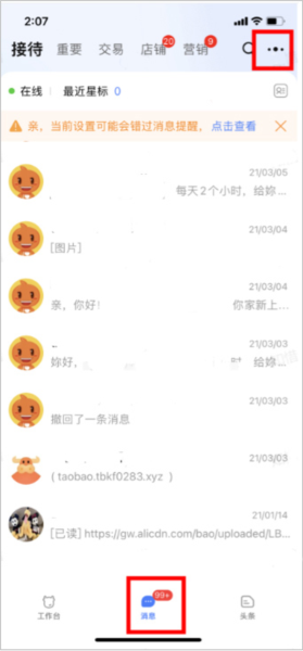 1、在消息页面,点击右上角的扩展图标(如下图所示)。