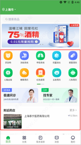 6、在软件里,所有药品都进行了分类,如此一来,用户能更迅速地找到自己所需的药物。
