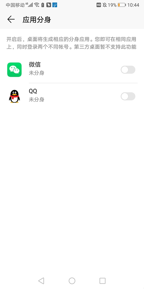 能够发现,仅微信和 QQ 具备分身功能,520 浏览器则不具备此功能。