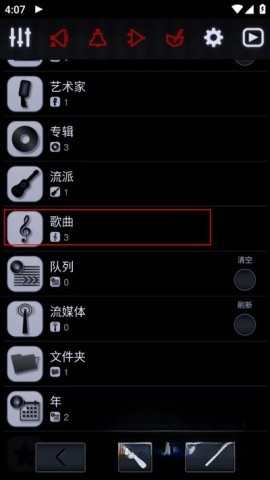 5、在设置中的“媒体库”里,选择“按需调取媒体信息”,这样你就可以快速找到喜欢的歌曲。