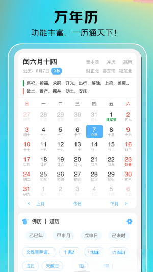 1. 单单一个日历就能显示出不同的类型,例如万年历、黄历、农历等等,满足不同用户的需求。
