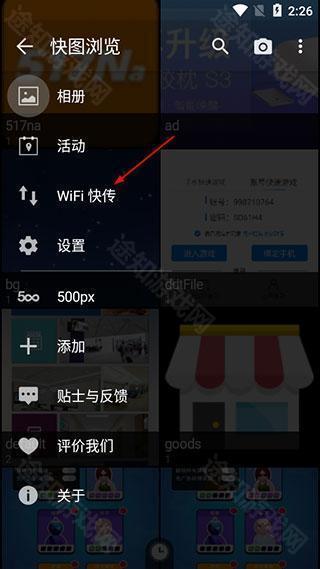 1. 第一步,打开软件,在界面左侧找到“WiFi快传”选项。
