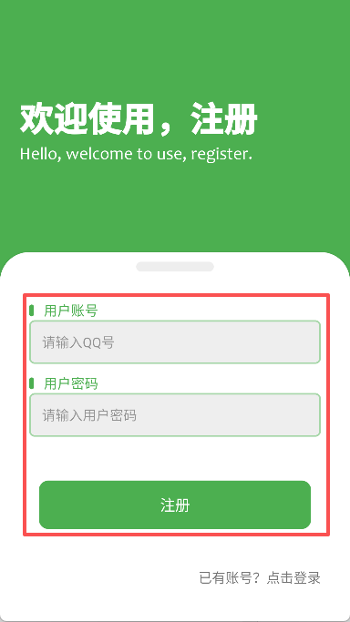 3、注册时需要输入QQ号及密码,注册后即可登录。