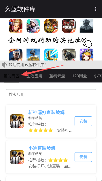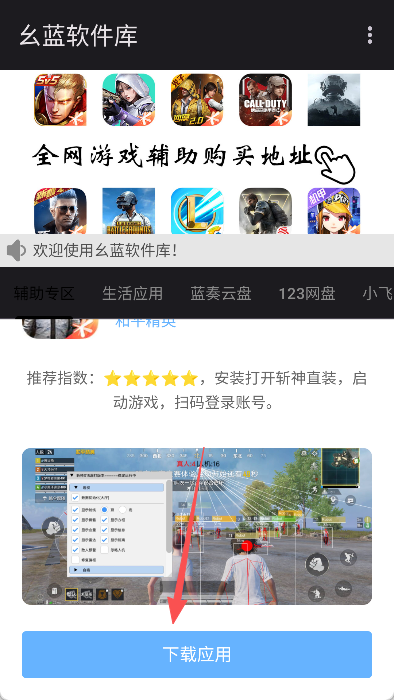 幺蓝软件库是一款为用户提供众多游戏资源和应用的工具软件,用户可以根据自己的需求选择喜欢的应用资源进行,无论是日常办公还是游戏娱乐等等,在这里都能轻松找到。并且还支持游戏辅助功能,帮助你在游戏里面所向披靡,并且稳定游戏网速,非常方便快捷,有需要的朋友快来点击吧。
