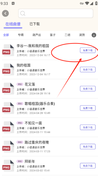 2、点击曲谱即可免费你想要学习演奏的曲谱。