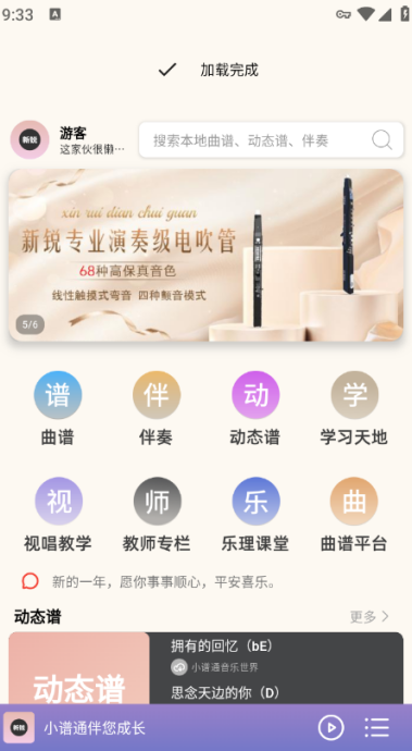 小谱通是一款专为乐器爱好者打造的动态谱学习应用,它不仅提供了丰富多样的曲谱课程供用户选择学习,更致力于为用户打造一个卓越且沉浸式的学习体验。无论你是初学者还是进阶玩家,都能在这款应用中找到适合自己的学习路径。用户只需轻点手机屏幕,即可随时随地演奏心仪的曲谱,享受音乐带来的乐趣与成就感。其功能全面且实用,涵盖了从基础教学到高级技巧的全方位学习需求。有需要的朋友,现在就来体验吧,开启你的音乐学习之旅!