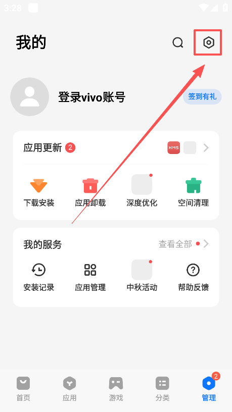打开vivo应用商店,点击右下角“我的”,进入个人中心。