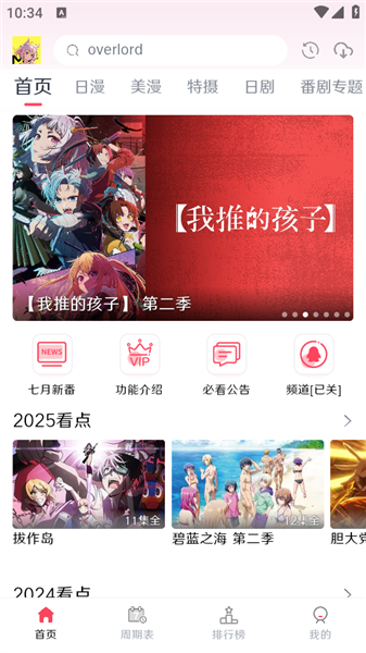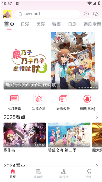 2、你可以看到最新推出的番剧或者热门受欢迎的动漫,都可以一键点击播放;