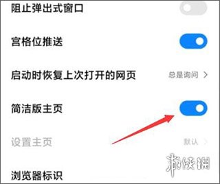 4、随后,找到“简洁版主页”选项,把右侧的按钮打开。