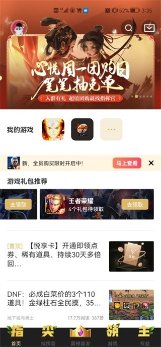 1. 第一步,打开心悦俱乐部,在首页顶端能瞧见会员版块,点击该版块里的“绑定游戏领礼包”。