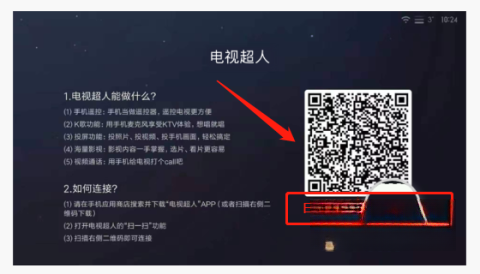 4、在电视的“电视超人”里能够找到二维码和IP地址。