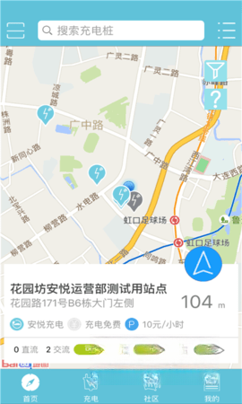 4、实时精准定位充电桩的位置与状态,并能为您准确导航至附近的充电桩。
