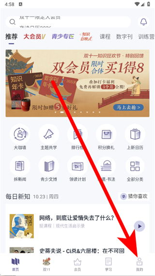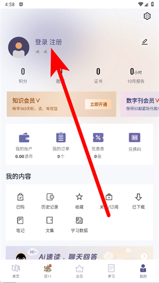 1. 开启三联中读,轻点页面底端的“我的”,从而进入个人页面。