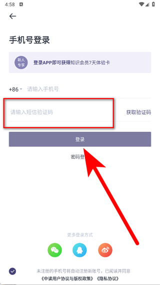 4、填入接收到的验证码,点击“登录”按钮,即可完成登录操作。