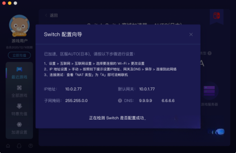 1. 先在加速器中挑选NS游戏执行加速操作,随后在NS设备上完成相应设置。