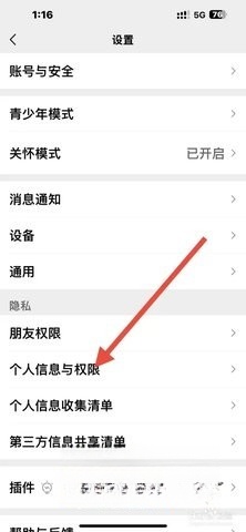 接下来选取“个人信息与权限”。