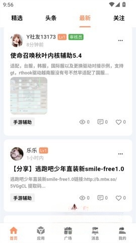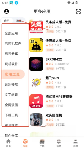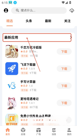 在主界面中,你能够看到“应用”“广场”“消息”等诸多功能,便于你进行浏览与探索。