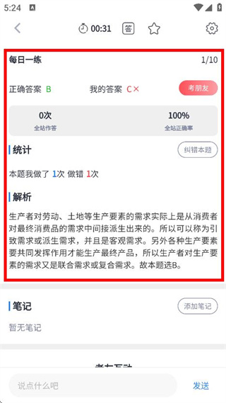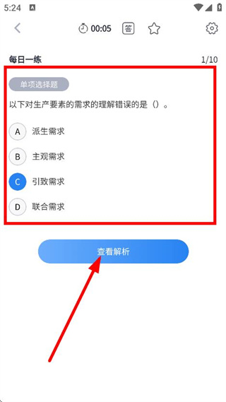 3、于每日一练的题目页面,完成题目作答后,点击“查看解析”,即可查看题目解析。