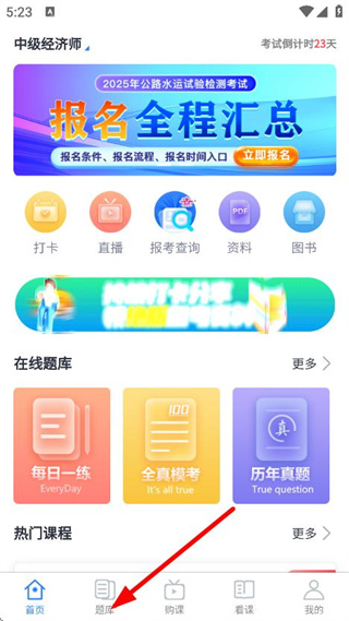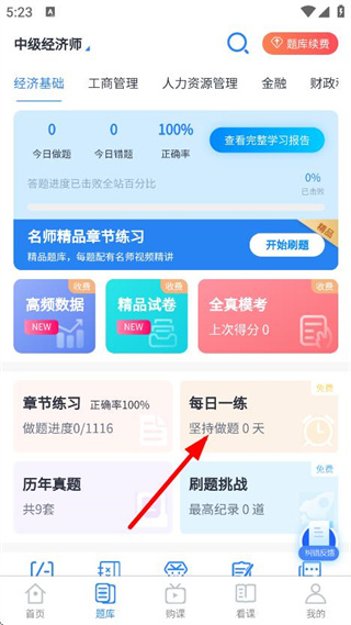 2. 在题库页面中,点击“每日一练”,即可进入每日一练题目页面。