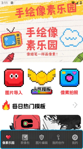 5、热门板块会融入当下流行元素,用户能在此找到心仪内容,将其二次创作成像素风格,着实不错!