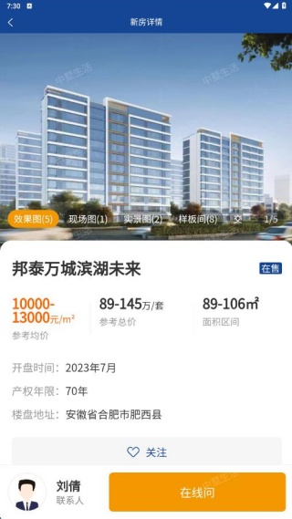 4、若你对某个楼盘感兴趣,点击即可查看详情,还可进行在线咨询。