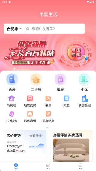 2. 首页呈现了新房、二手房以及租房等各类信息,便于大家进行选择。