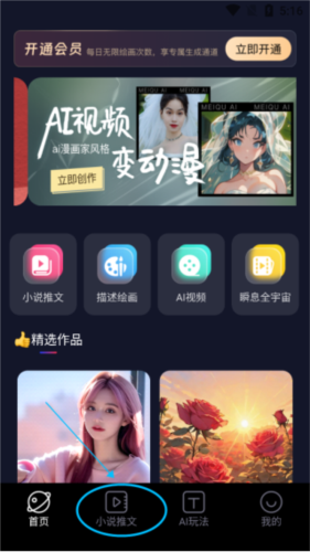 1. 打开美趣ai,在其中找到小说推文并点击。
