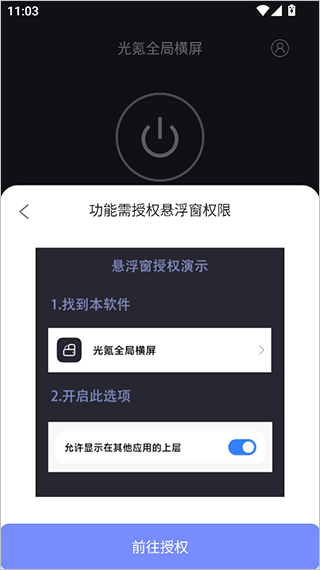 2. 轻点弹窗里的“前往授权”按钮,页面将跳转至手机应用权限设置界面。