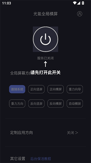 在首页能够选择“全局横屏”或者“全局竖屏”,如此一来,设备上的所有应用都会被强制切换到相应的方向。