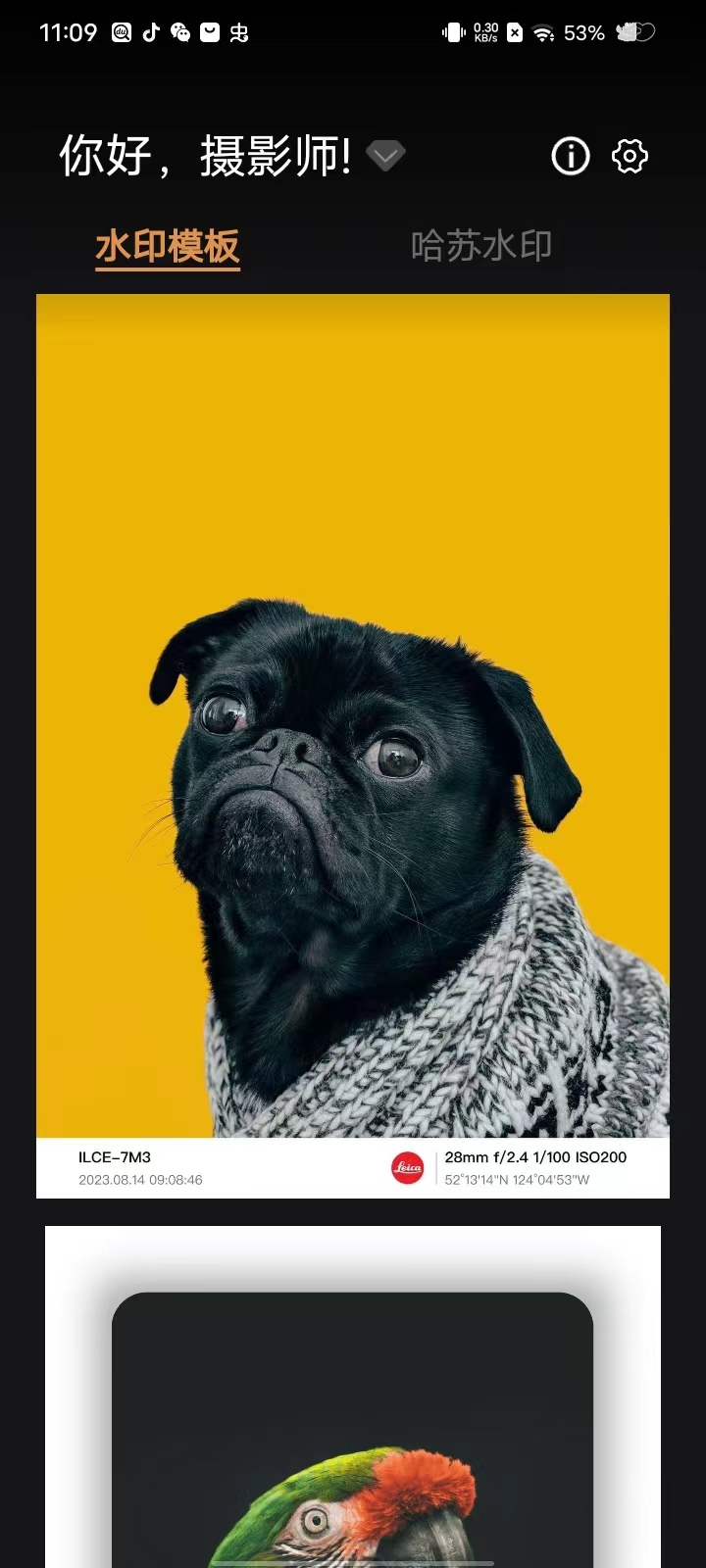 2、软件主要包含两个板块,其一为水印板块,其二是哈苏板块,用户能够根据自己的喜好来挑选。