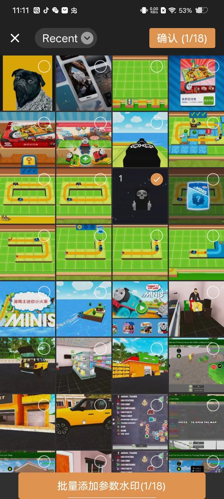 3、在水印板块中任选一张,点击进入,挑选想要添加水印的照片,最多可选18张。