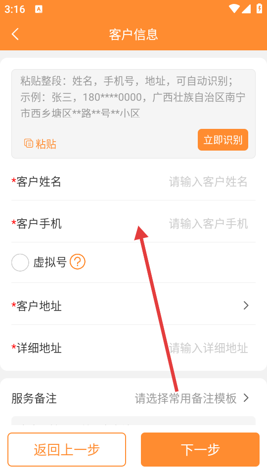 4、进入【客户信息】页面,填好【客户姓名】【客户手机】等必填信息,接着点击【下一步】,即可完成下单流程。
