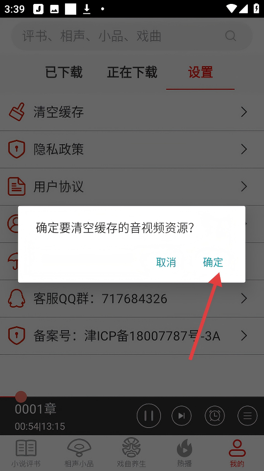 4、于弹出的确认框内,点击【确定】,以此清空缓存的音视频资源。
