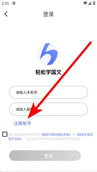 2. 来到登录界面,点击“注册账号”选项,随即进入注册页面。