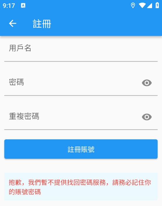 7、依次输入用户名、密码,并再次确认密码,随后点击【注册账号】,即可完成注册流程。