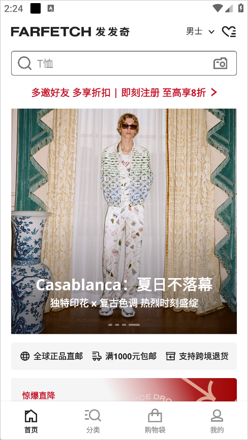 与50多个国家的1400个品牌达成签约,为知名买手店和高端百货提供正品直供货源。完善身份信息后,马上就能享受极速清关服务。心仪好物一键开启购买,无需出门,就能在线畅游全球购物。