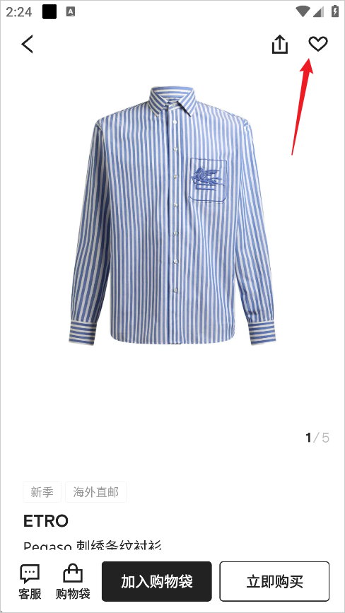 2、来到商品详情页面,点击页面右上角的“心形”图标按钮。