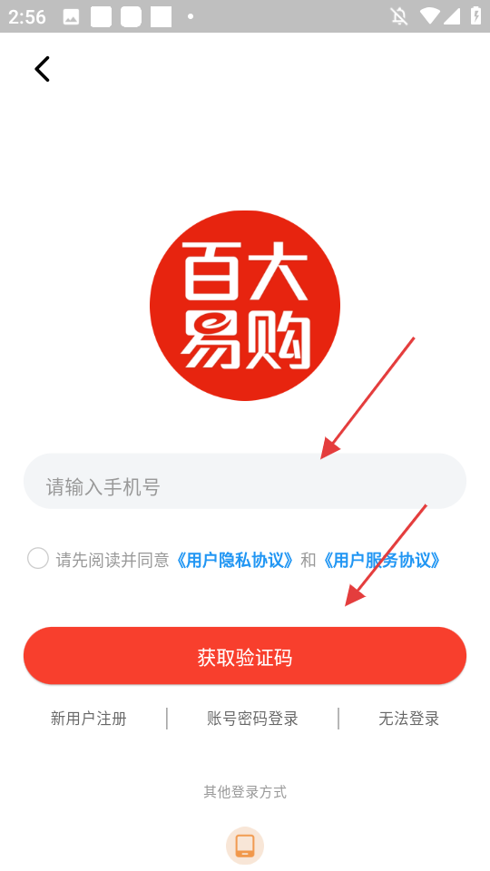 2. 于登录页面处输入手机号码,接着点击【获取验证码】。