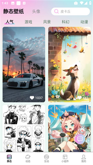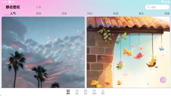 1当你进入静态壁纸的安装页面时,映入眼帘的是众多不同类别的静态美图。