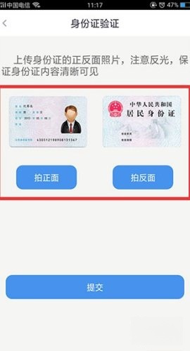 5、上传身份证正、反面照片并提交,便能成功完成实名认证。