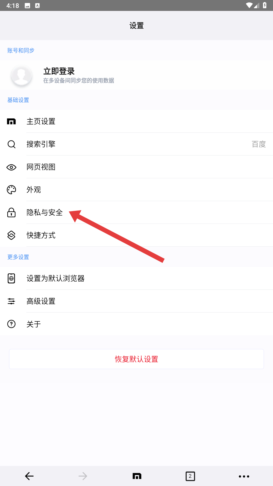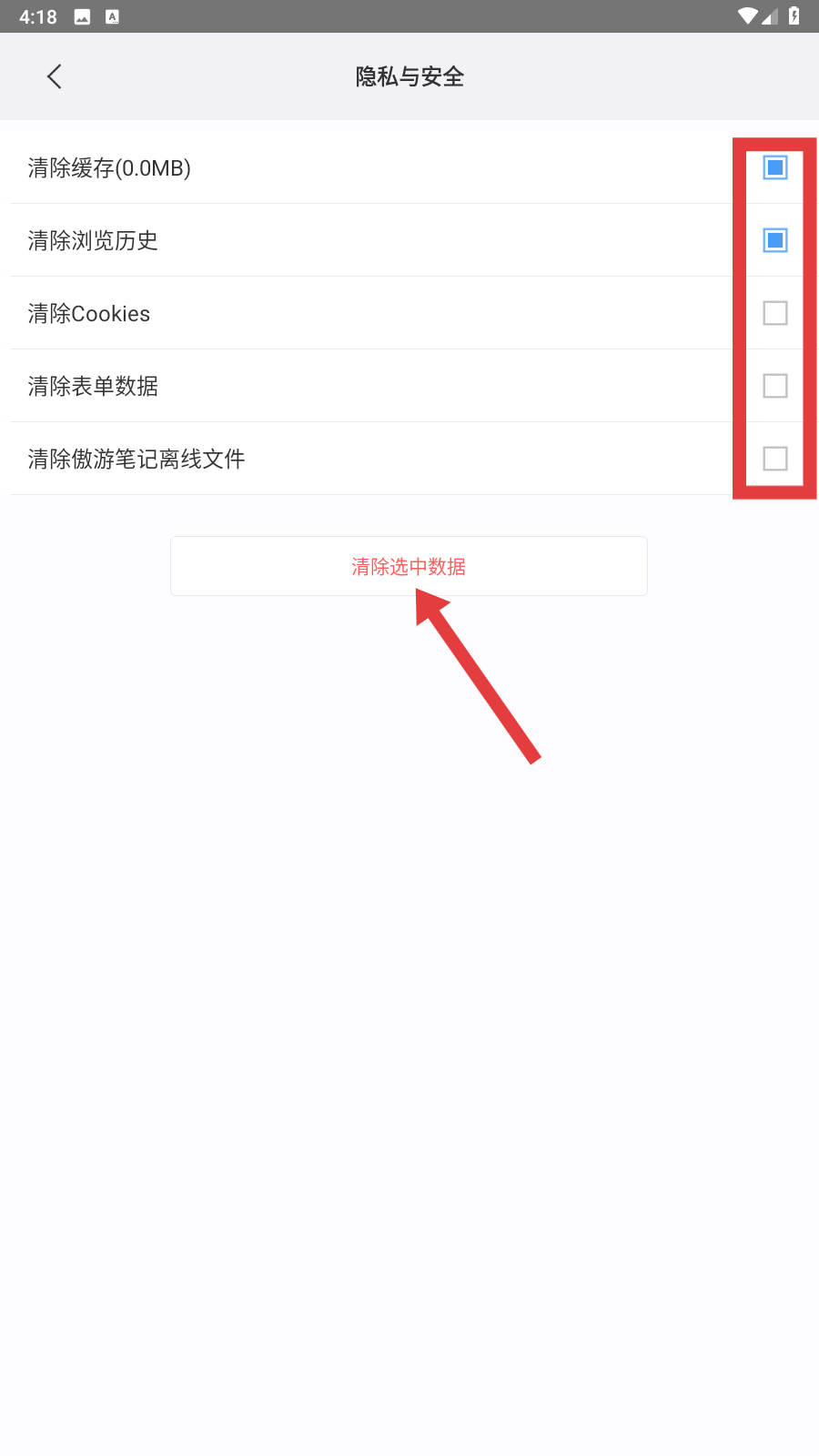 2. 轻点【隐私与安全】,即可进入数据清除的详细选项界面。